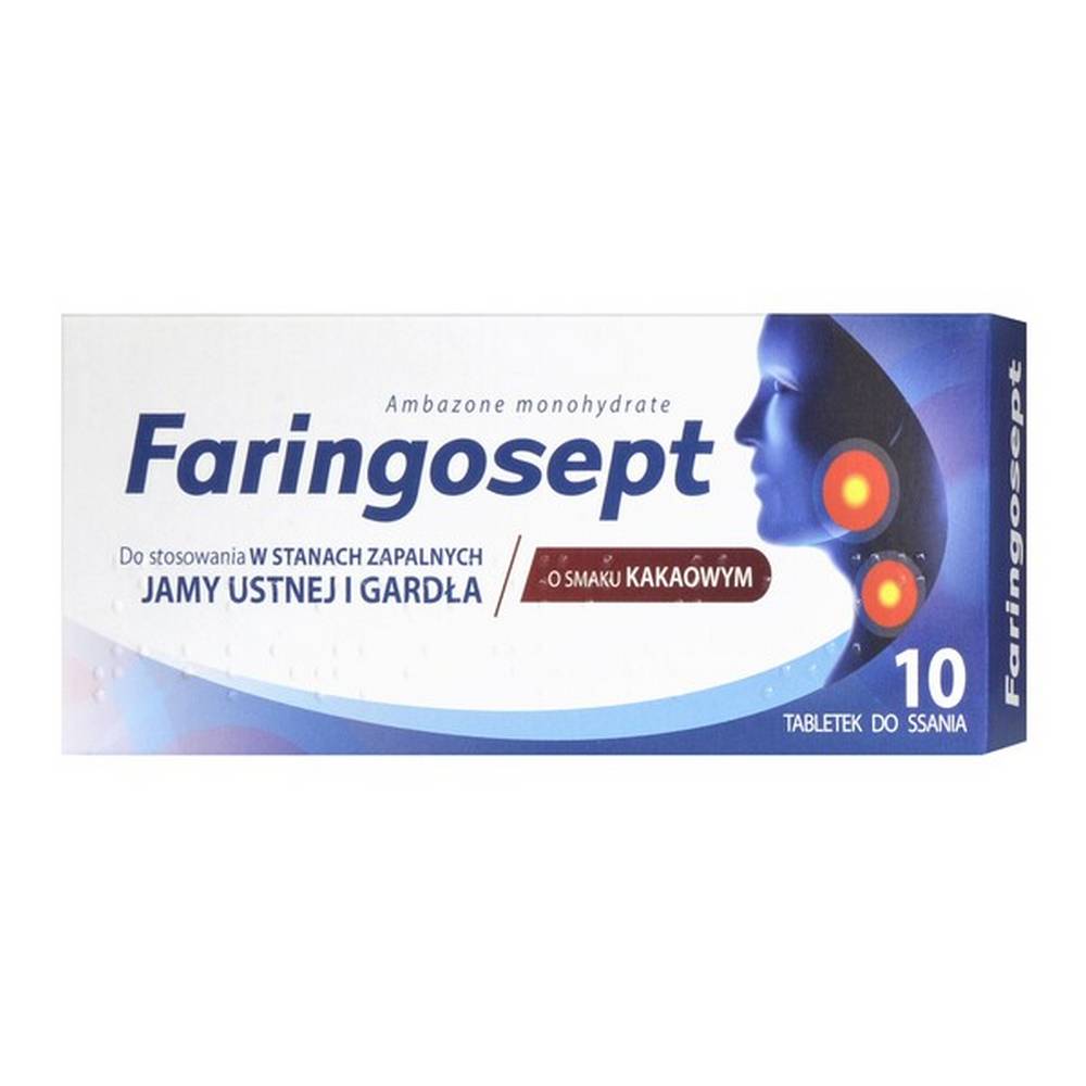 Faringosept jest to lek w formie tabletek do ssania. Jego substancją czynną jest ambazon, który wykazuje działanie bakteriostatyczne. Produkt przeznaczony jest dla młodzieży i osób dorosłych, do stosowania w zakażeniach jamy ustnej i gardła.