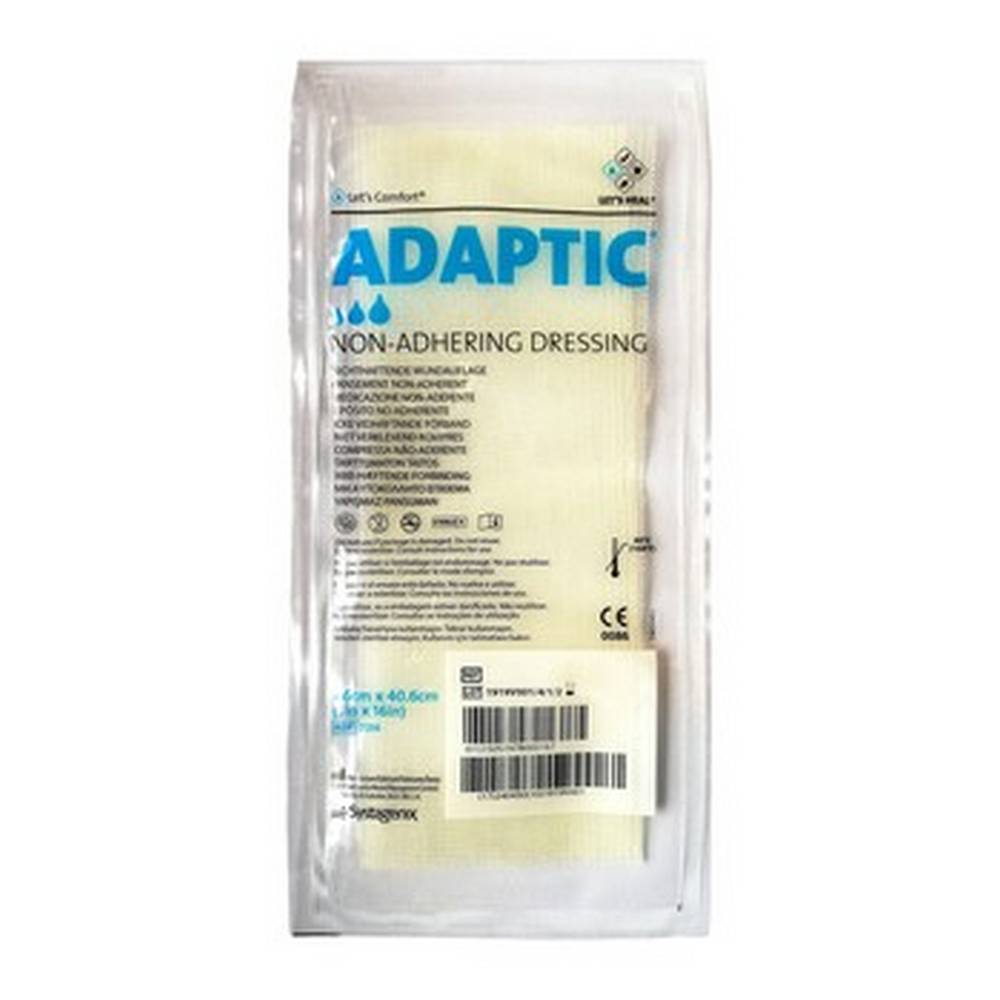 The Adaptic medical device is a sterile dressing with dimensions of 7.6 x 40.6 cm, which moisturizes and lubricates and does not stick to the wound.