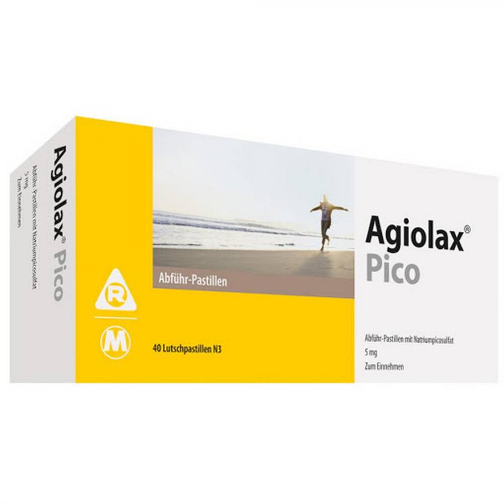Agiolax Der Pico. Wirkstoff: Natriumpicosulfat Anwendungsgebiete: Zur kurzfristigen Anwendung bei Verstopfung sowie bei Krankheiten, die eine erleichterte Defäkation erfordern. Warnung: Bei Verstopfung handelt es sich nur um die kurzfristige Einnahme von Abführmitteln.