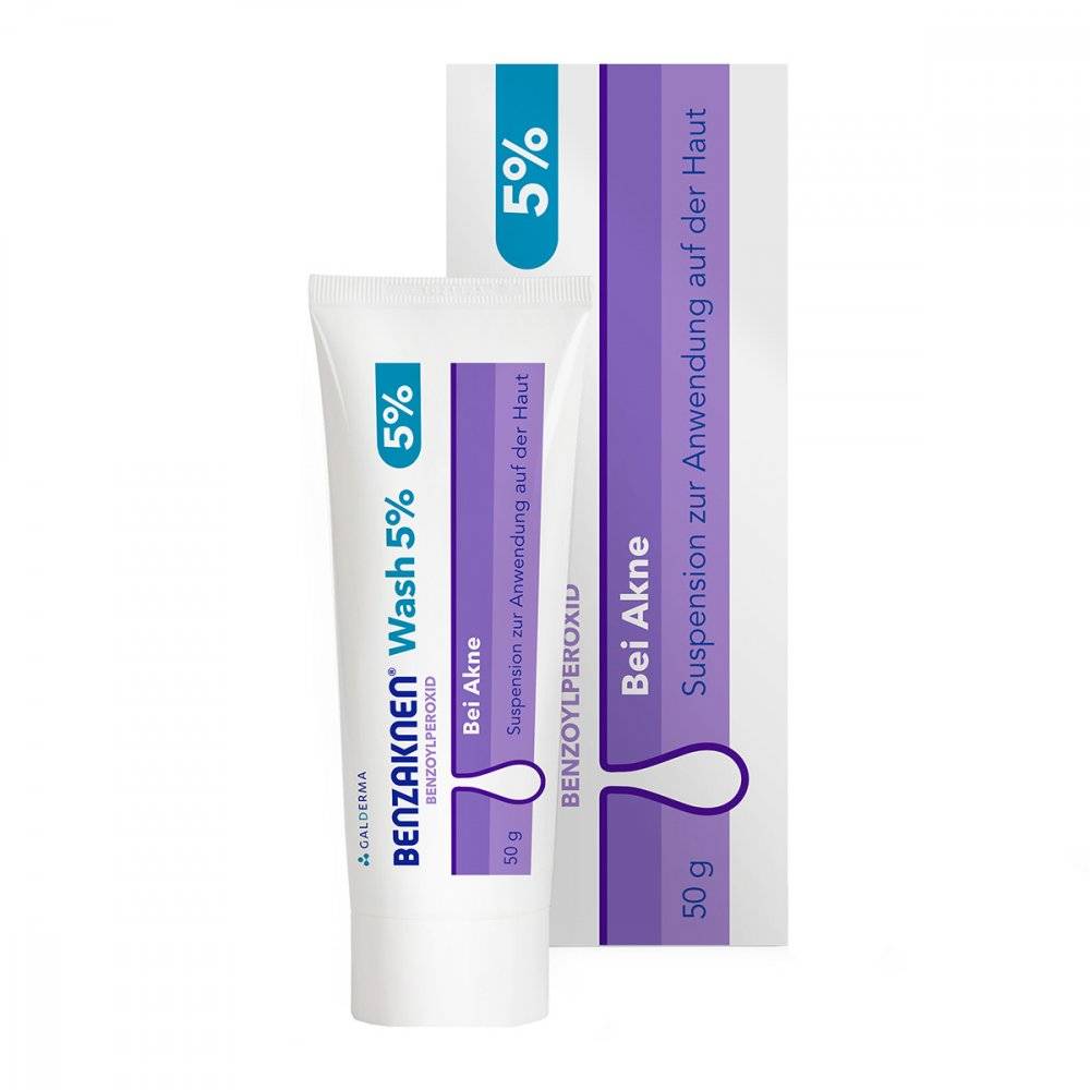 Benzaknen Wash 5% (Packungsgro?e: 50 g) zur einfachen und unkomplizierten Behandlung von Akne, Pickeln und Mitessern mit Benzoylperoxid.
