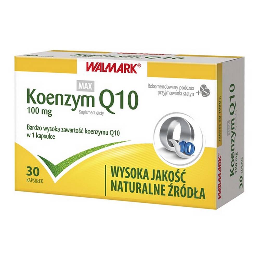 Koenzym Q10 Max – suplement diety zawierający dużą ilość koenzymu Q10 w 1 kapsułce. Produkt przeznaczony dla dorosłych, również w okresie przyjmowania statyn.Koenzym Q10 inaczej zwany ubichinonem i jest elementem istotnym w pozyskiwaniu energii z pożywieniem.Ilość koenzymu Q10 w organizmie człowieka zmniejsza się wraz z wiekiem. Koenzym Q10 jest składnikiem większości komórek i występuje licznie w takich narządach jak: serce, wątroba, płuca.