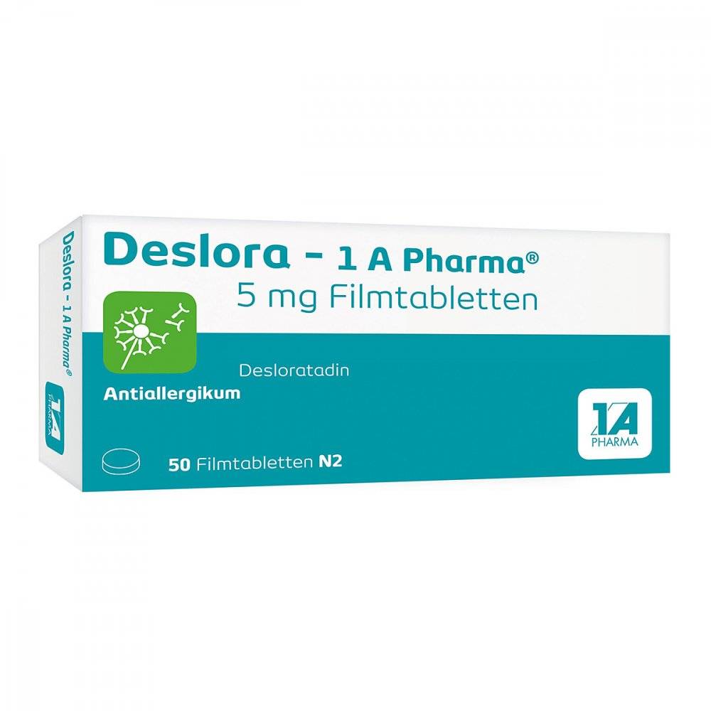 Deslora-1a Pharma 5 mg Filmtabletten (Packungsgröße: 50 stk) bessert die Symptome bei allergischer Rhinitis (durch eine Allergie hervorgerufene Entzündung der Nasengänge, beispielsweise Heuschnupfen oder Hausstaubmilben-Allergie) bei Erwachsenen und Jugendlichen ab 12 Jahren. Diese Symptome beinhalten Niesen, laufende oder juckende Nase, Juckreiz am Gaumen und juckende, gerötete oder tränende Augen.