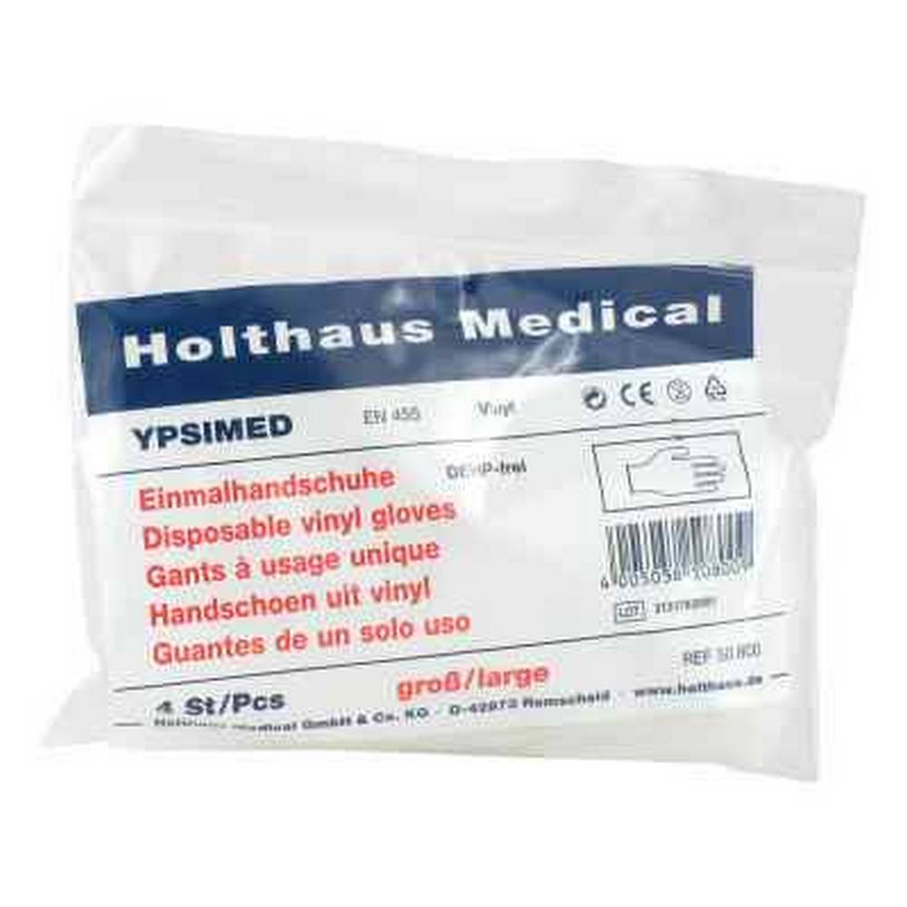disposable vinyl gloves. Gloves are lightly powdered. Disposable gloves packaged (4 pieces) large / large (L).