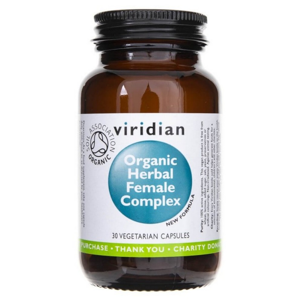 Organic Herbal Female Complex from Viridian is a dietary supplement in vegetarian capsules containing a blend of traditional herbal extracts prepared with women in mind.