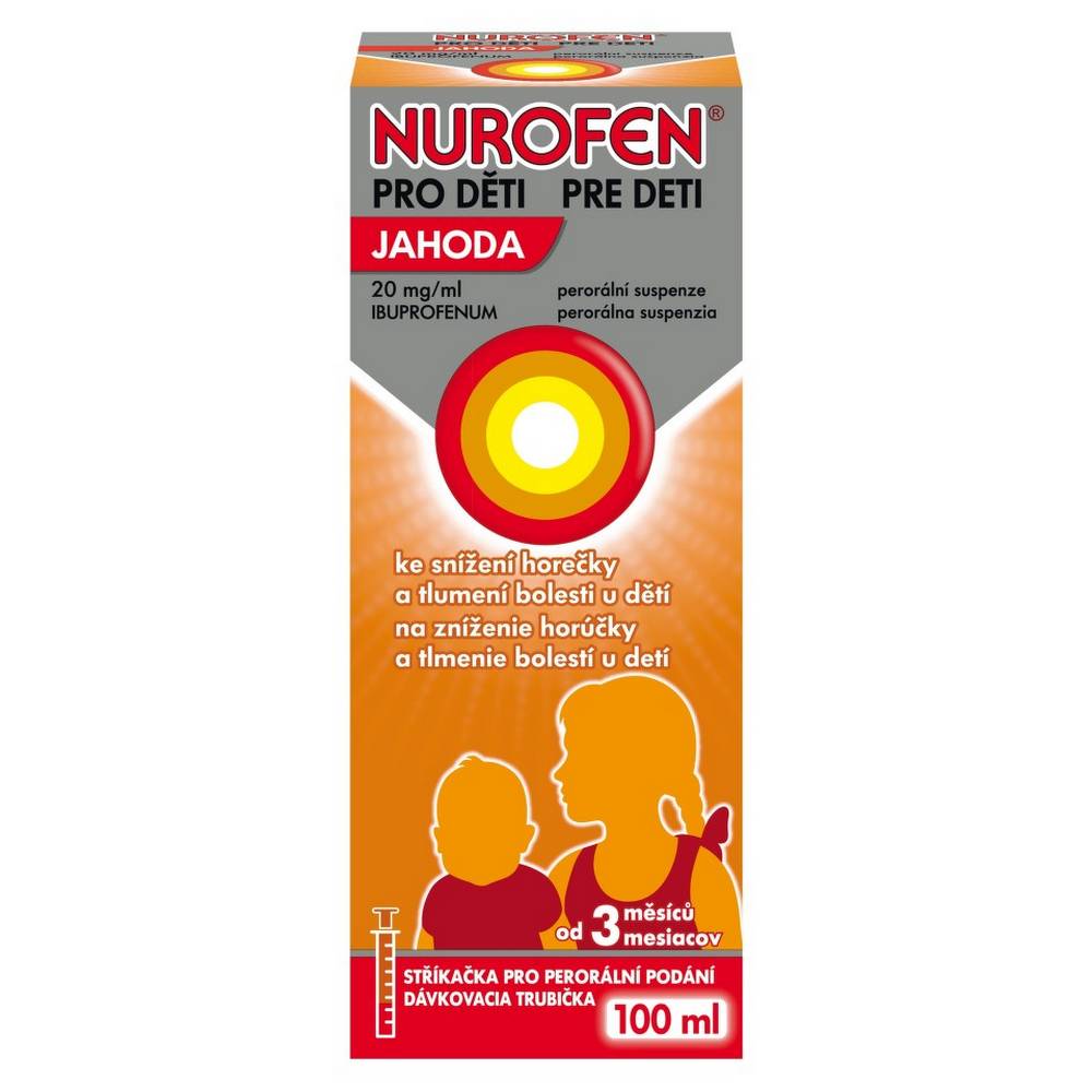 Nurofen pro děti Jahoda obsahuje léčivou látku ibuprofen, která patří do skupiny tzv. nesteroidních protizánětlivých léčiv. Zabraňuje tvorbě látek zodpovědných za vznik bolesti a zánětu. Svým působením snižuje horečku, zmírňuje záněty různého původu a tlumí mírné až středně těžké bolesti. Lékovka je opatřena bezpečnostním uzávěrem zabraňujícím otevření dětmi. Součástí každého balení je dávkovací trubička, pomocí níž lze přesně odměřit dávku od 0,5 do 5 ml suspenze po 0,5 ml.