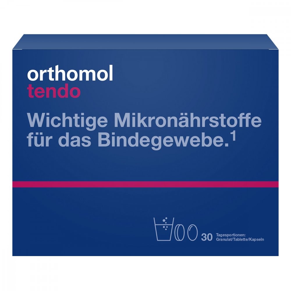 Orthomol Tendo granules / capsules 30 combination pack (pack size: 1 pack) are a dietary supplement to support the connective tissue. A weak connective tissue is often the cause of irritation of the tendons (Achilles tendon) and the tendon attachments (tennis elbow).