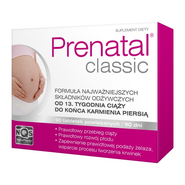 Prenatal classic – suplement diety zawierający w swoim składzie składniki korzystnie wpływające na matkę i dziecko. Produkt przeznaczony dla kobiet w ciąży.Cholina wspomaga prawidłowe funkcjonowanie wątroby i łożyska matki, bierze udział w przewodzeniu impulsów nerwowych.Cholina, kwas foliowy, metyl B12 oraz witamina B6 wspomagają utrzymanie prawidłowego metabolizmu homocysteiny.Nie należy przekraczać zalecanej dziennej porcji.
