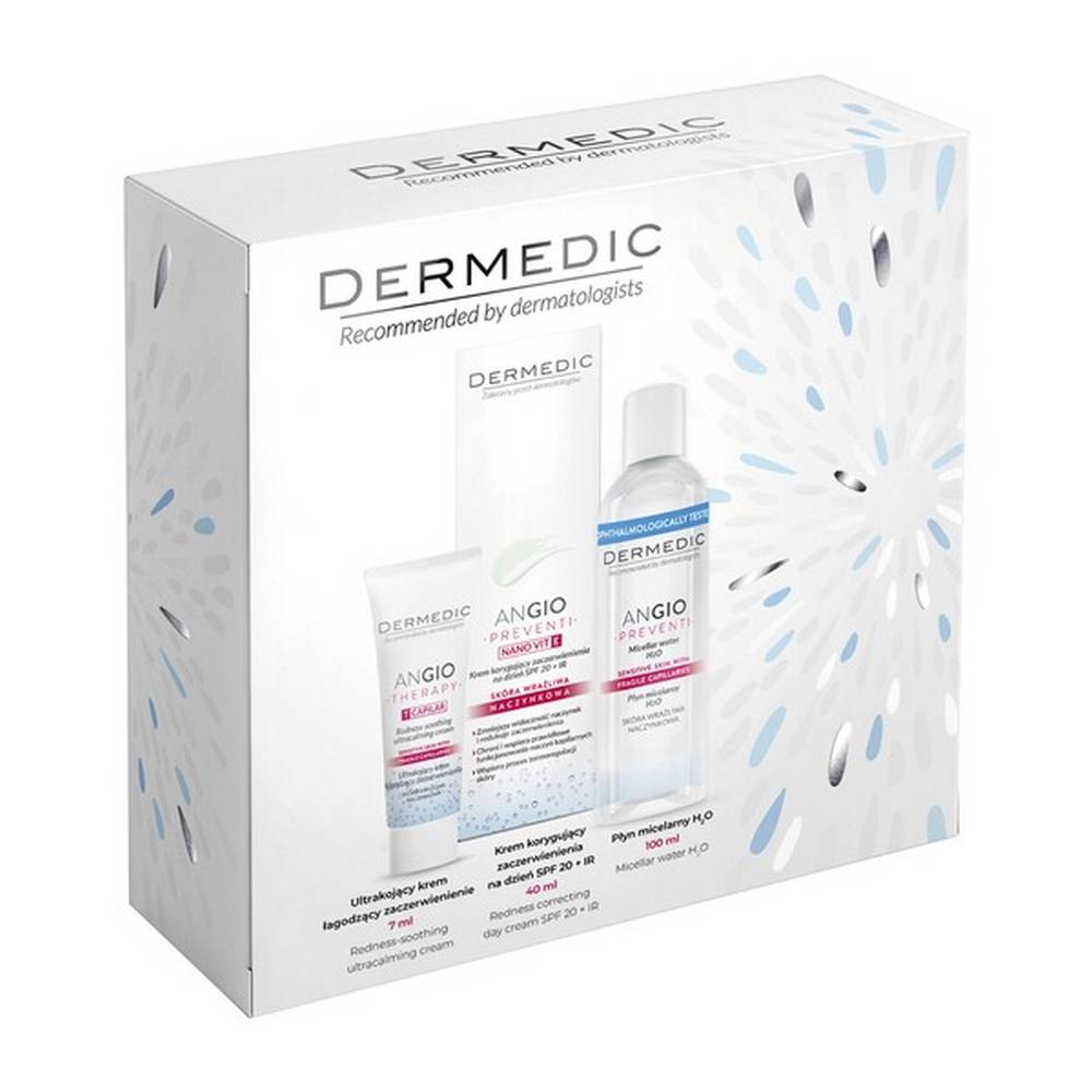 Dermedic Angio Promotional Set – intended for the daily care of sensitive skin with capillaries and rosacea. Correcting cream reduces redness and redness. The ultra-healing cream strengthens the walls of blood vessels, reduces skin irritation and has a cooling effect. The micellar liquid removes makeup and impurities from the skin surface. It is gentle on the eyes, does not clog pores and does not leave a greasy film on the skin.
