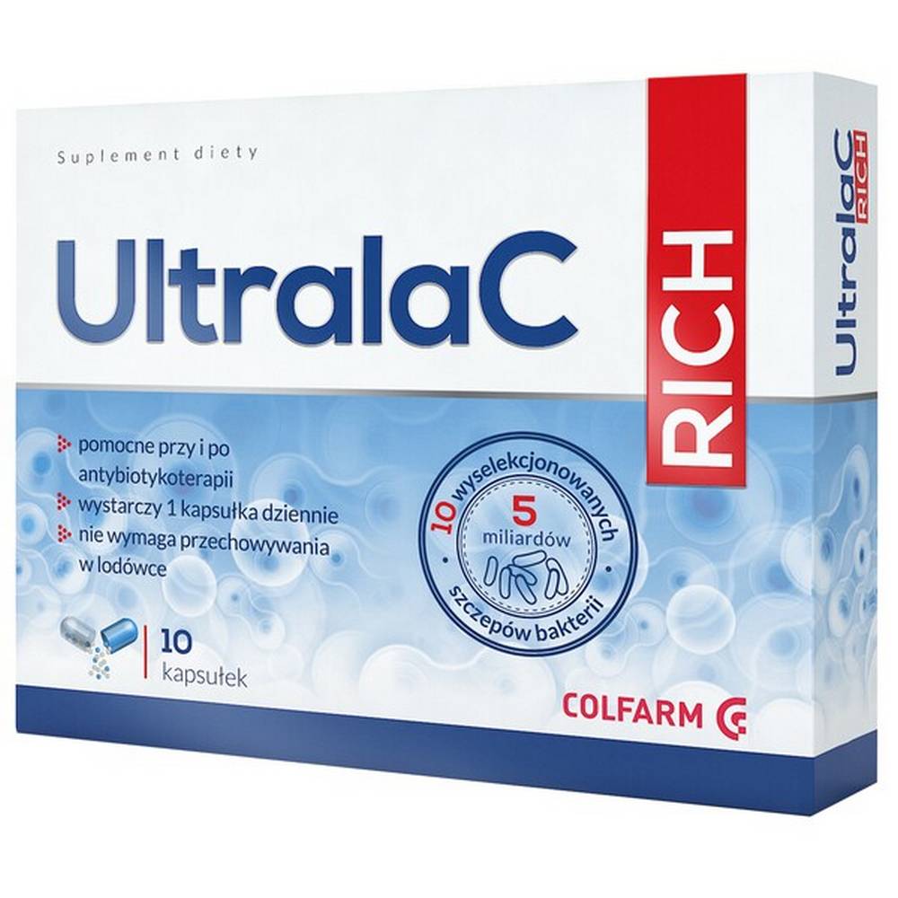 UltralaC Rich – suplement diety, w którego skład wchodzi 5 miliardów żywych kultur bakterii dziesięciu wyselekcjonowanych szczepów oraz prebiotyki: inulina i Fibregum™ – błonnik rozpuszczalny z akacji. Produkt przeznaczony dla osób dorosłych.