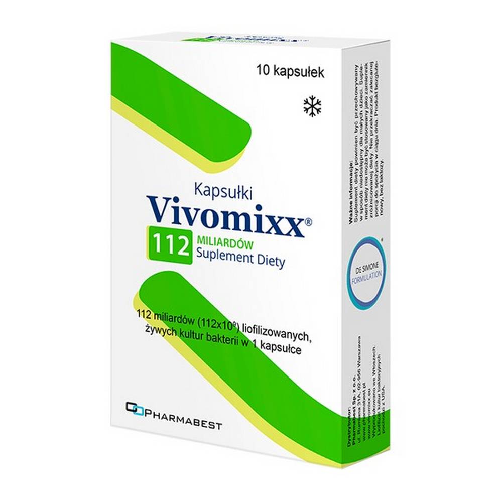 Vivomixx 112 – suplement diety zawierający w swoim składzie liofilizat żywych kultur bakterii probiotycznych. Preparat przeznaczony jest dla niemowląt, dzieci i osób dorosłych.Vivomixx 112 zawiera 112 miliardów dobroczynnych bakterii w jednej kapsułce, które przyczyniają się do prawidłowego funkcjonowania jelit.Nie należy przekraczać zalecanej dziennej porcji.
