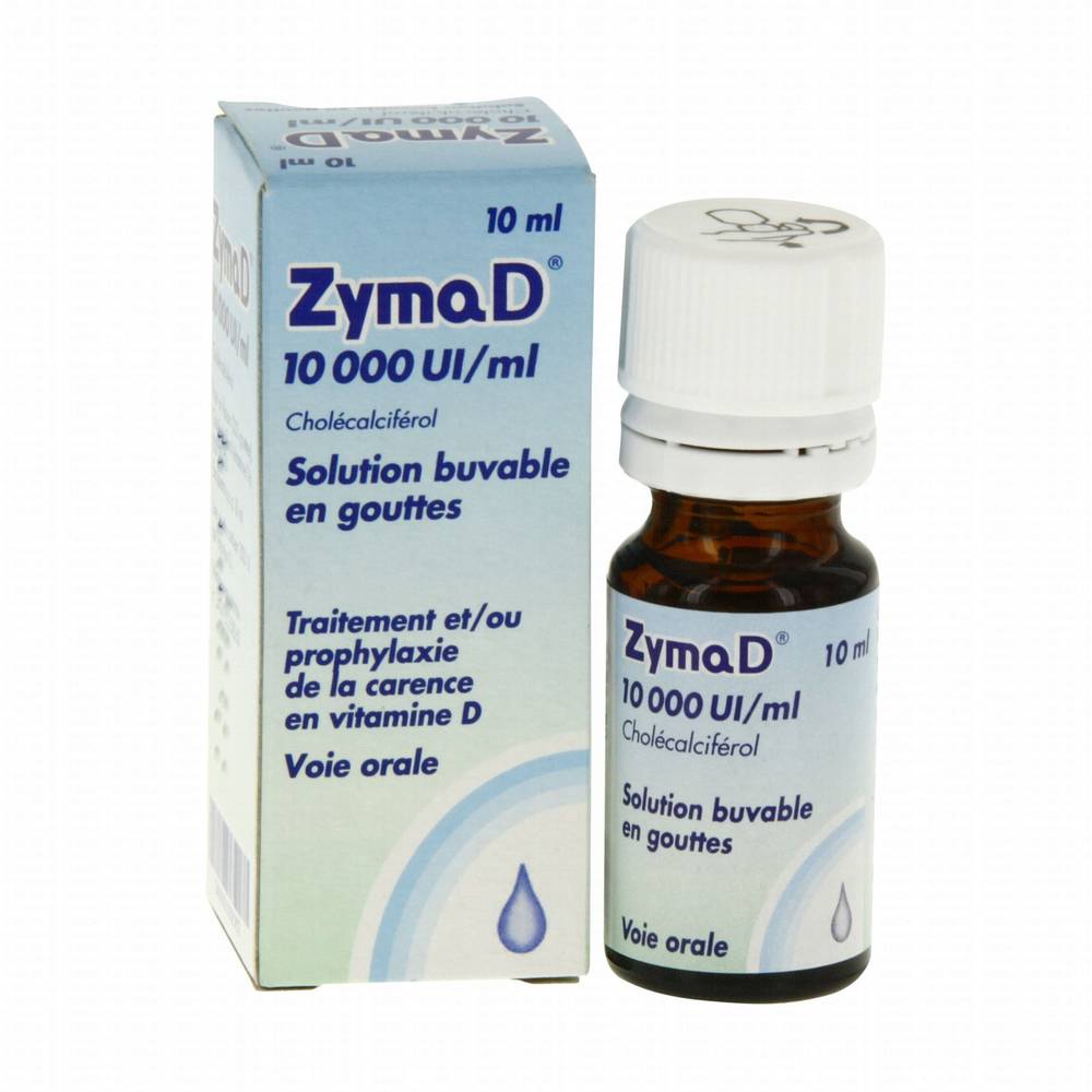 Zymad 10 000 UI/ml est un supplément de vitamine D3 (cholécalciférol) à haute dose. Il contribue à la santé générale en favorisant la solidité des os et des dents et en soutenant le fonctionnement du système immunitaire. La vitamine D3 est essentielle pour l’absorption du calcium et le maintien de niveaux sanguins adéquats.